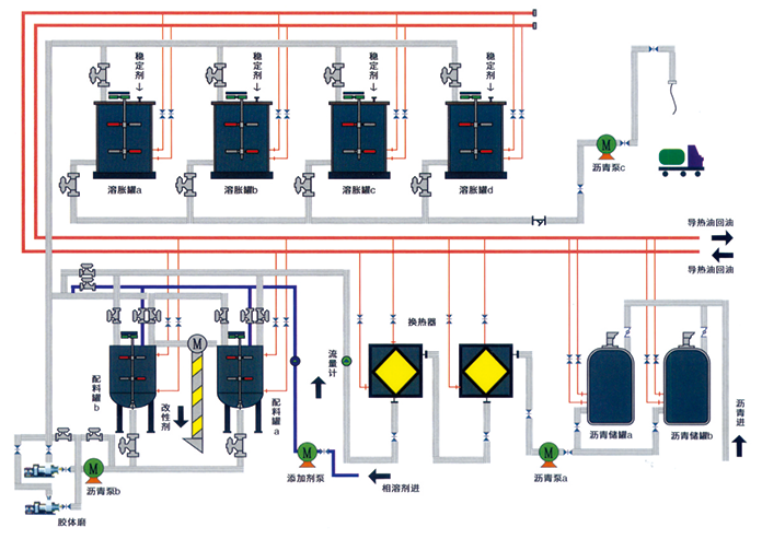 本公司研制生產(chǎn)的瀝青改性設(shè)備適合于一定溫度的基質(zhì)瀝青,SBS和添加劑混合在一起,經(jīng)溶脹、研磨、孕育等生產(chǎn)出高質(zhì)量的聚合物改性瀝青,具有工作效率高、可靠性強(qiáng)、顯示直觀(guān)、易操作維護(hù)等優(yōu)點(diǎn),該設(shè)備的加工工藝特別適合于SBS改性劑的改性加工, 再配以專(zhuān)有的穩(wěn)定性技術(shù),徹底解決改性瀝青的離折問(wèn)題,采用人機(jī)界面和PLC相結(jié)合的控制方式,可使整個(gè)生產(chǎn)流程形象直觀(guān)地展現(xiàn)出來(lái),實(shí)現(xiàn)集中控制,操作簡(jiǎn)單。核心部分的元器件均采用國(guó)際知名品牌或國(guó)內(nèi)產(chǎn)品,大大提高了設(shè)備運(yùn)行的可靠性和穩(wěn)定性,可與瀝青油庫(kù),瀝青攪拌設(shè)備等相關(guān)產(chǎn)品配套使用。